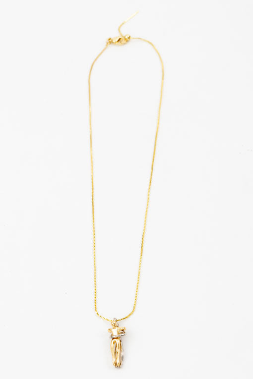 Cadena básica con dije de pareja abrazada, dije acero inoxidable, cadena chapa de oro.